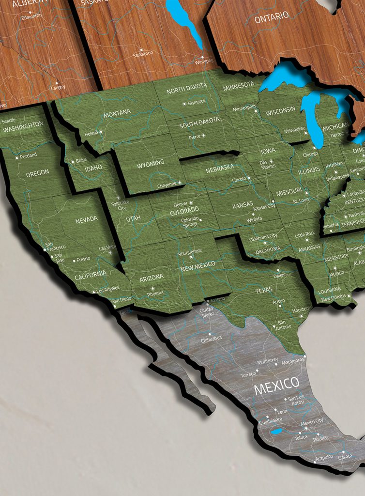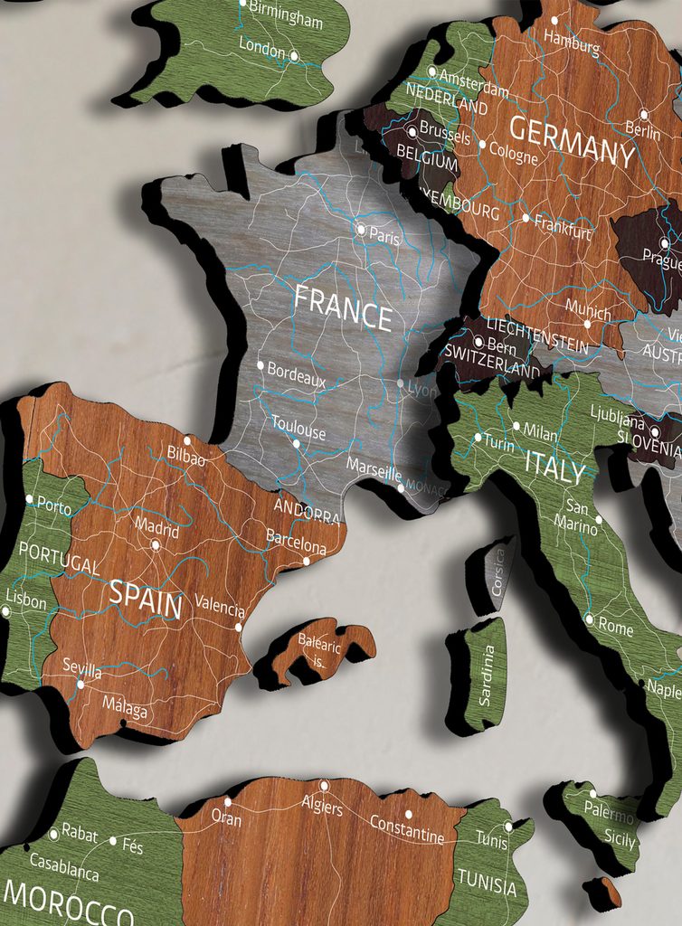 Vrstvený 3D Efekt: Mapa je vytvorená z viacerých vrstiev ekologického dreva , ktoré sú precízne zlepené k sebe. Tento inovatívny dizajn vytvára hĺbku a skutočný 3D efekt , vďaka ktorej mape doslova vystupuje a mení sa s každým pohľadom.