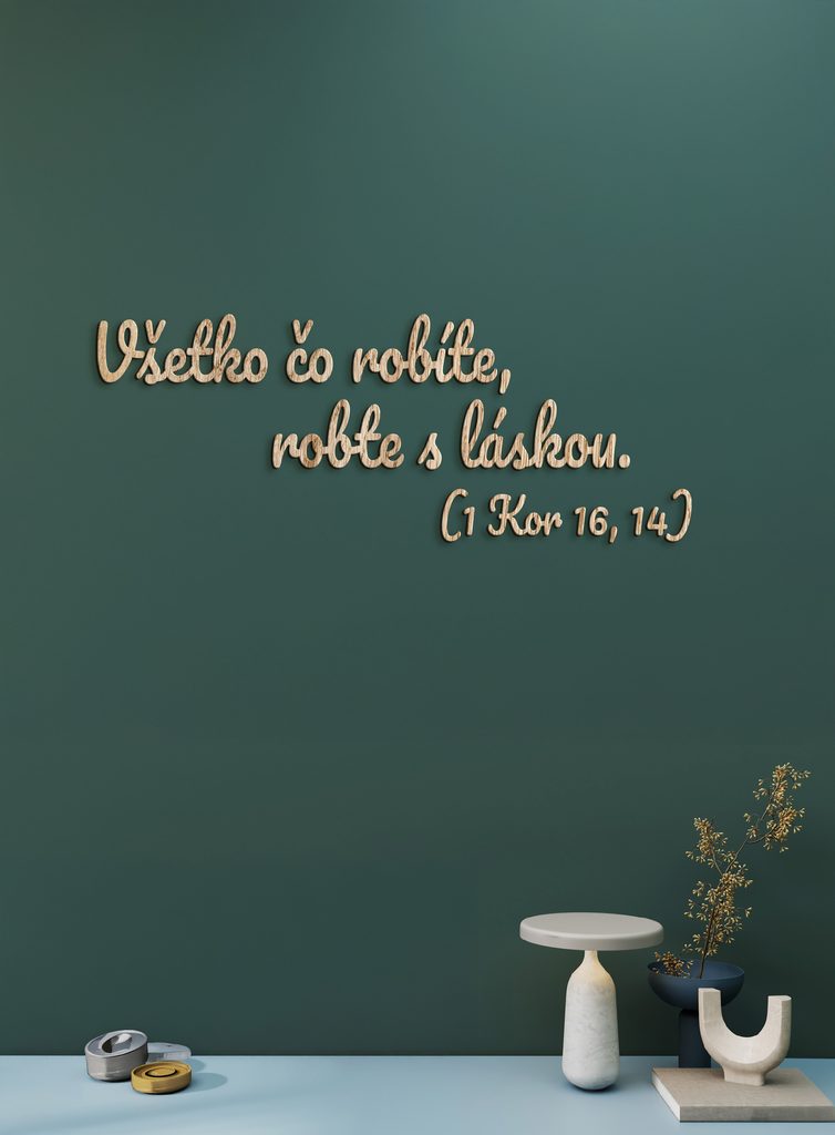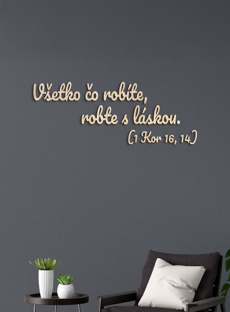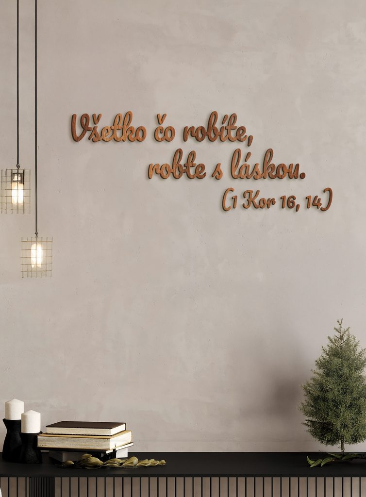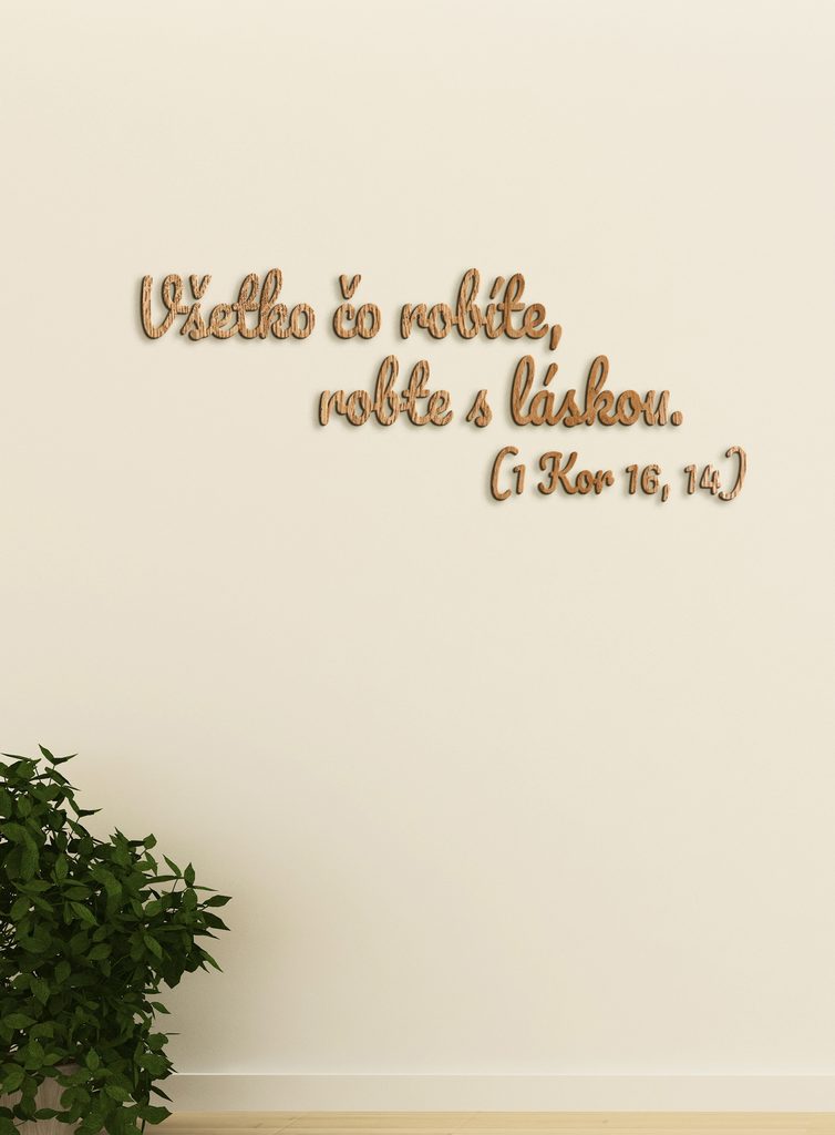 Drevený citát "Všetko čo robíte, robte s láskou (1Kor 16,14)"
