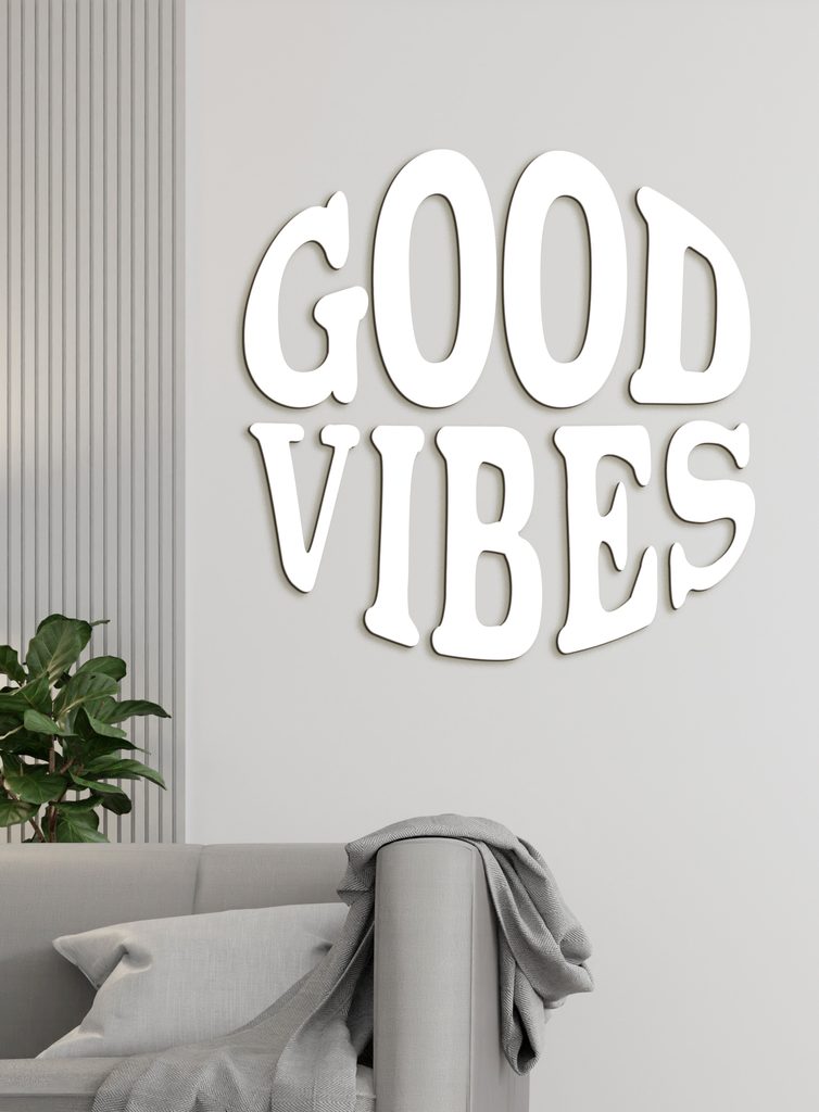 Náš drevený nápis "GOOD VIBES" je dokonalým doplnkom do vášho domova alebo kancelárie, ktorý vytvára pozitívnu a povzbudzujúcu atmosféru. Je Vyrezávaný z kvalitného HDF dreva a má moderný a elegantný dizajn, ktorý ľahko zapadne do akéhokoľvek interiéru.