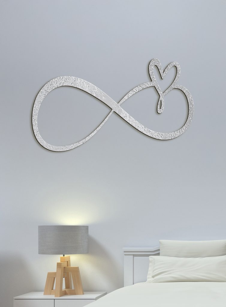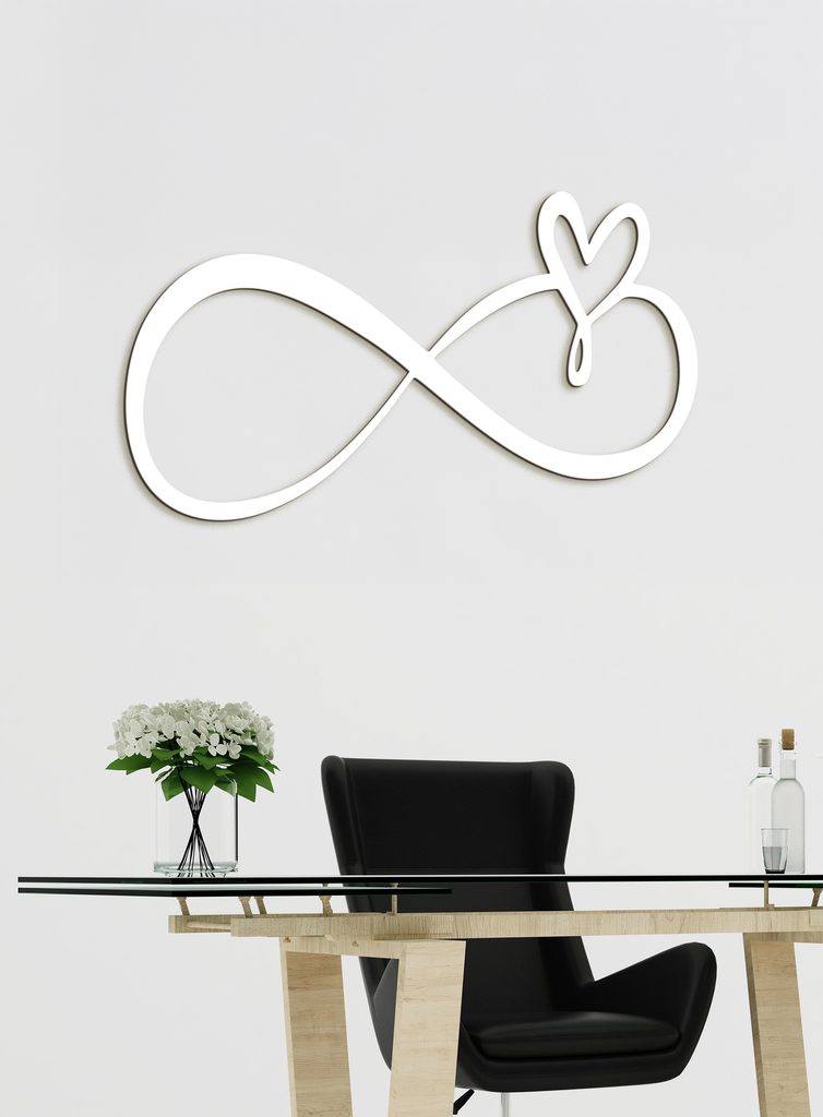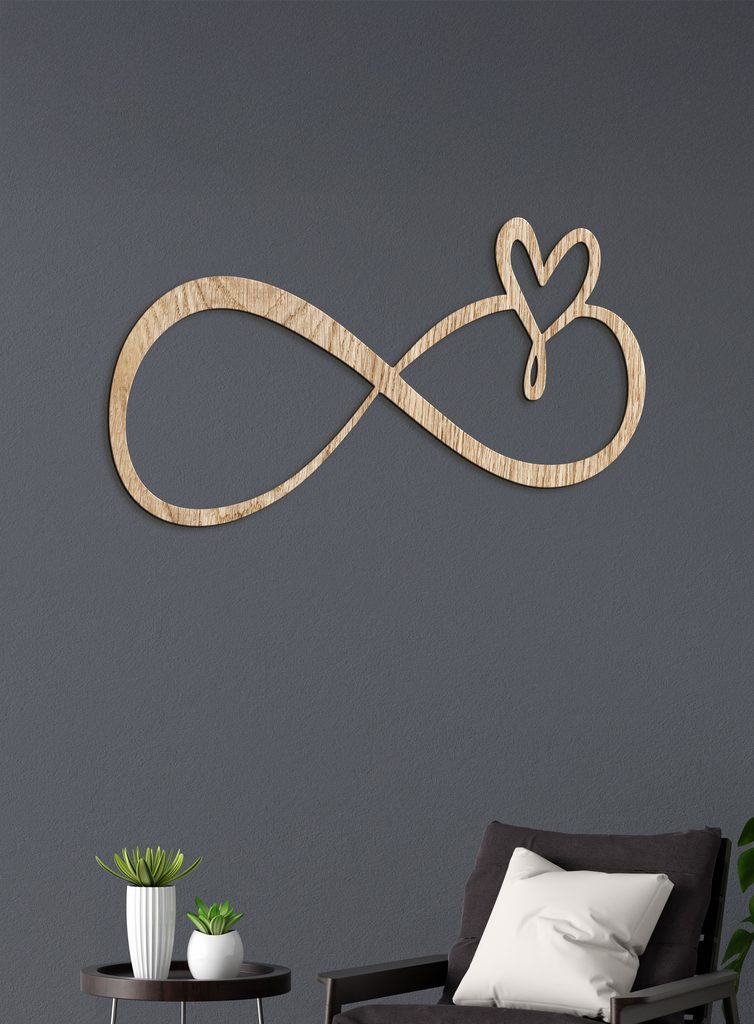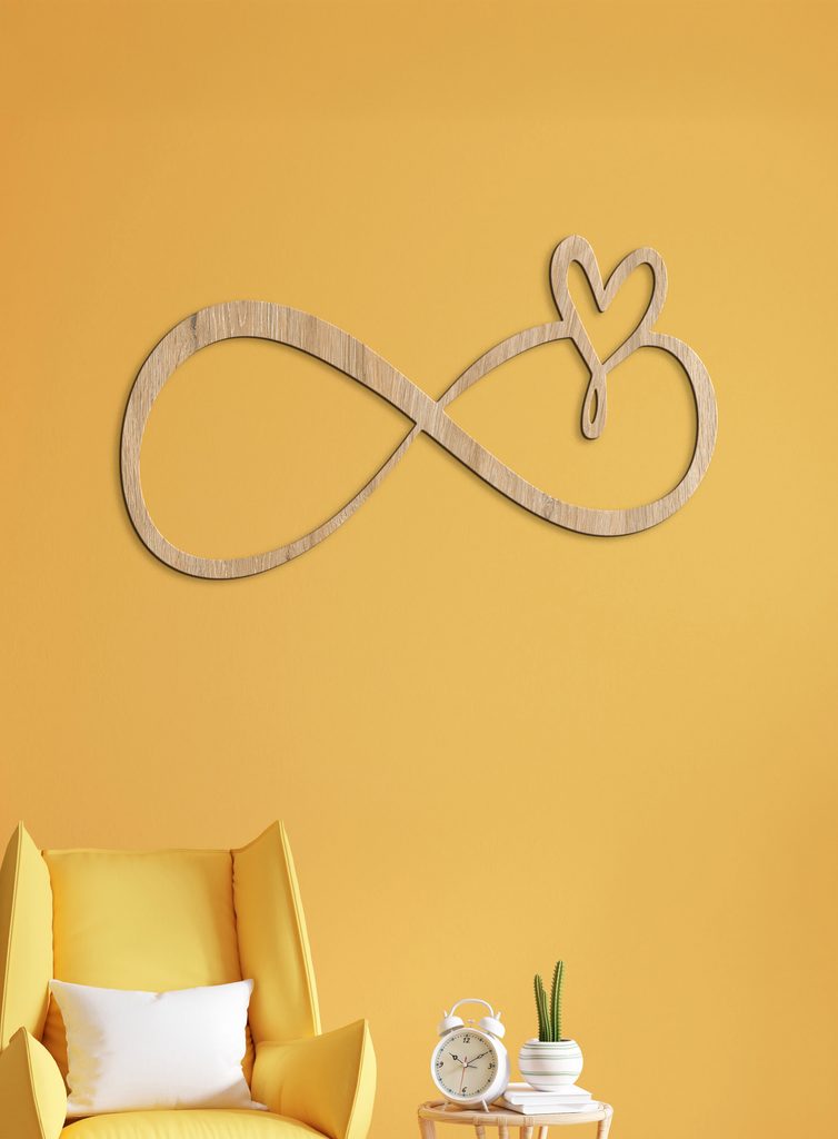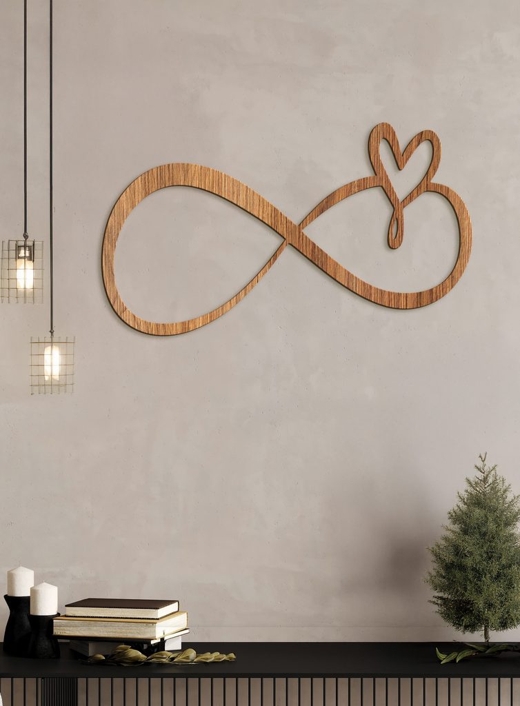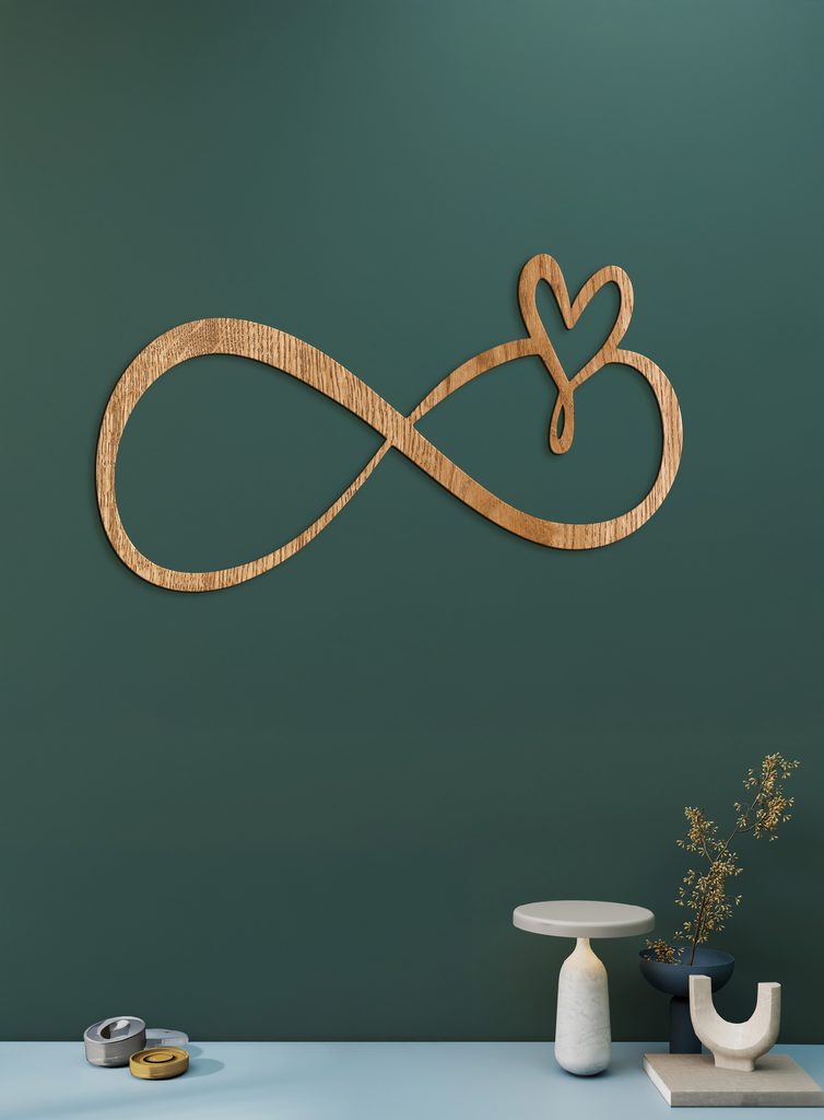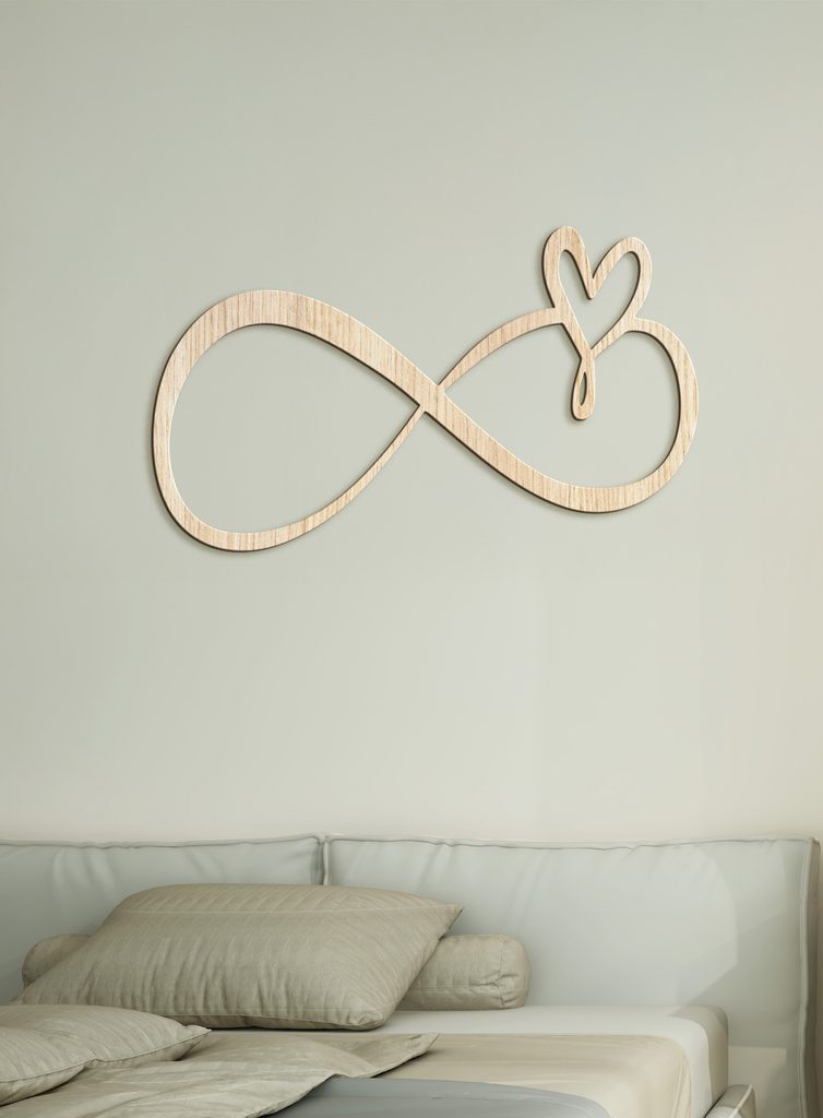 Predstavte si symbol nekonečna, ktorý elegantne obkolesuje jemné srdce, ako by vám pripomínal nekonečnú lásku a nekonečné puto. Tento drevený obraz z HDF dreva zobrazuje práve tento krásny motív.