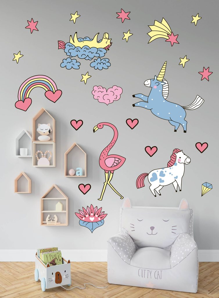 Premeňte detskú izbu na rozprávkovú krajinu plnú mágie! Naše nálepky s farebným jednorožcom, dúhou a hviezdičkami oživia každú stenu. Nechajte svoju fantáziu zablúdiť do sveta rozprávok.