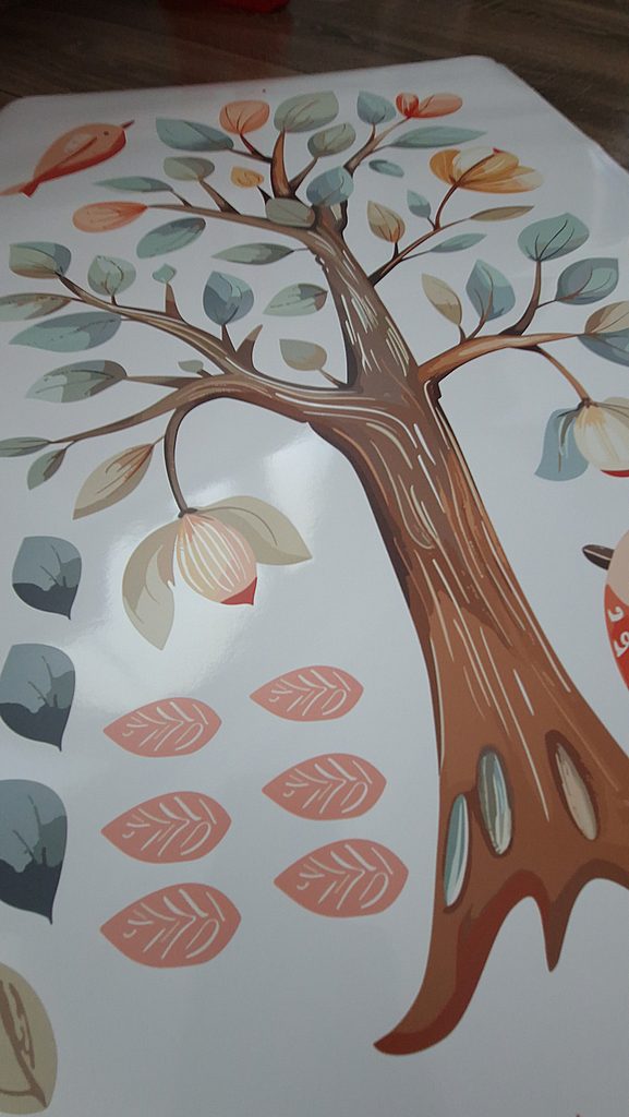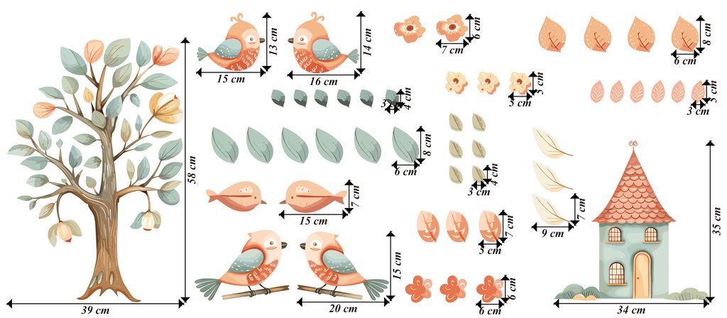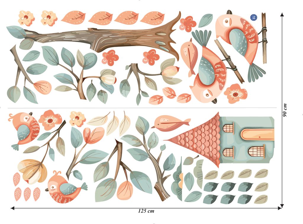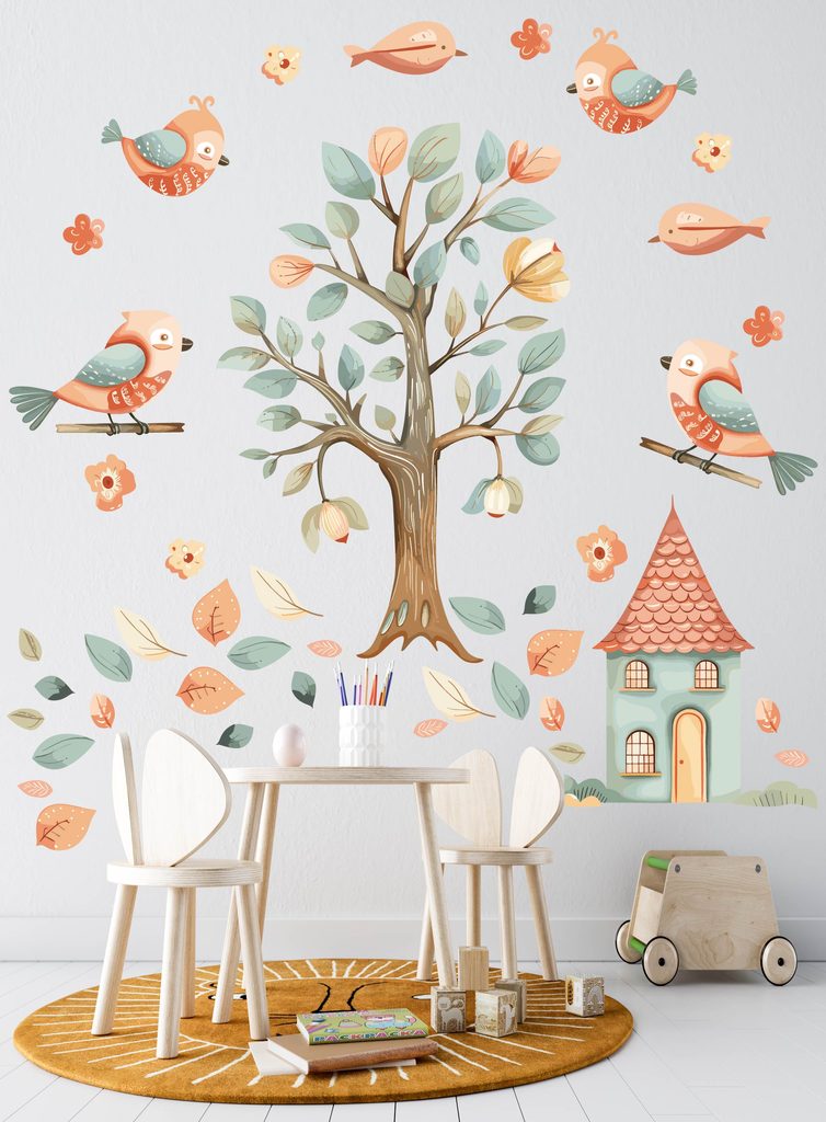 Predstavujeme vám očarujúcu súpravu nálepiek, ktorá prenesie vašu ratolesť do čarovného sveta prírody. Nálepky zobrazujú rozkvitnutý strom s vtáčikmi, domček a farebné lístky, ktoré vytvárajú atmosféru pokoja a harmónie.