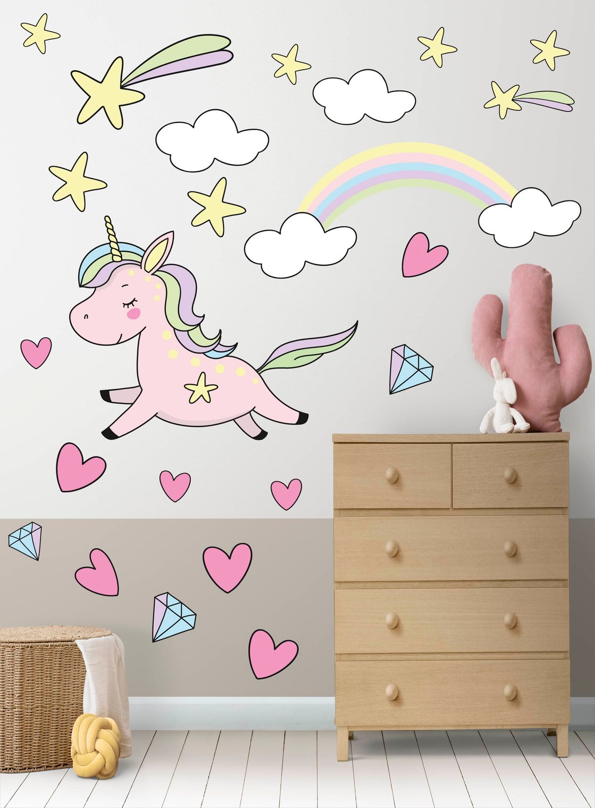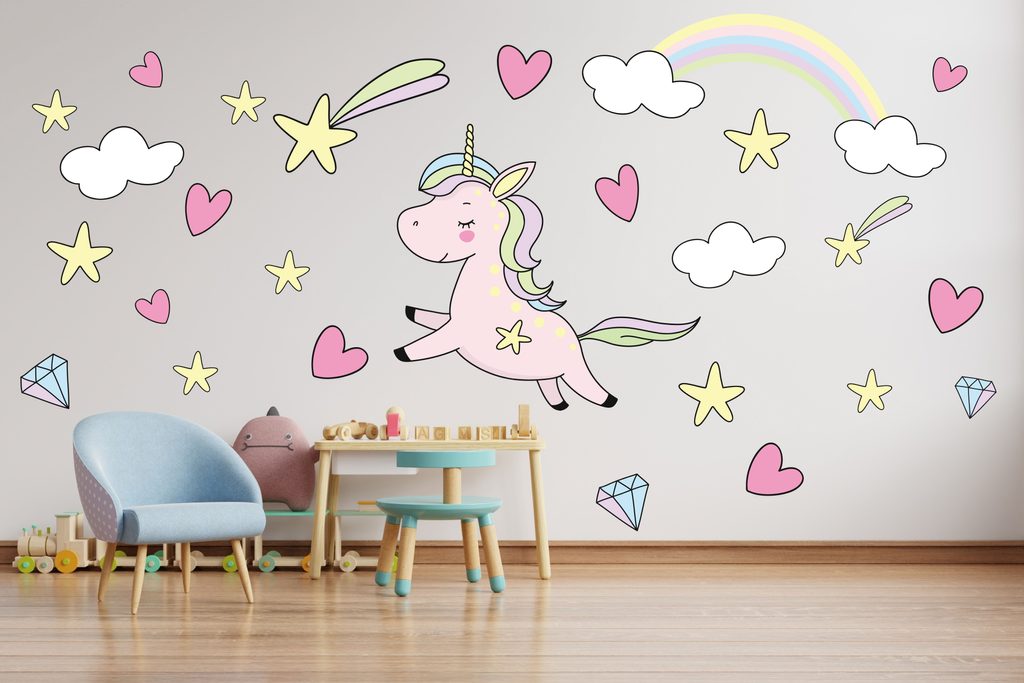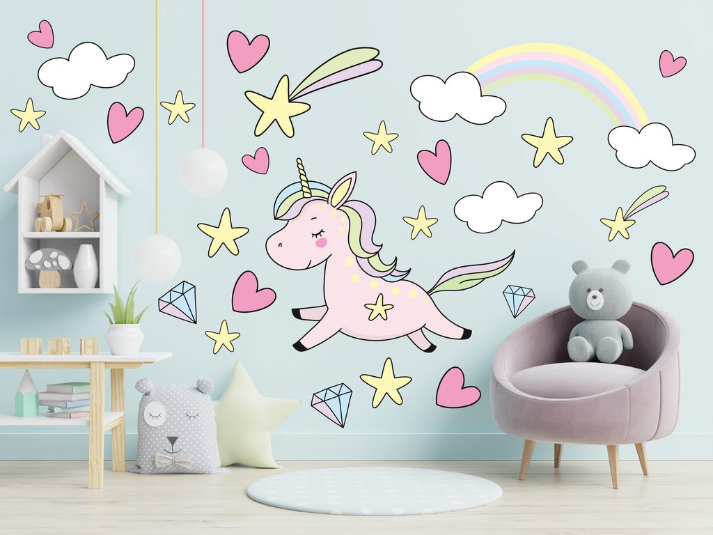 Premeňte detskú izbu na rozprávkovú krajinu plnú mágie! Naše nálepky s ružovým jednorožcom, dúhou, srdiečkami a hviezdami oživia každú stenu. Nechajte svoju fantáziu zablúdiť do sveta rozprávok.