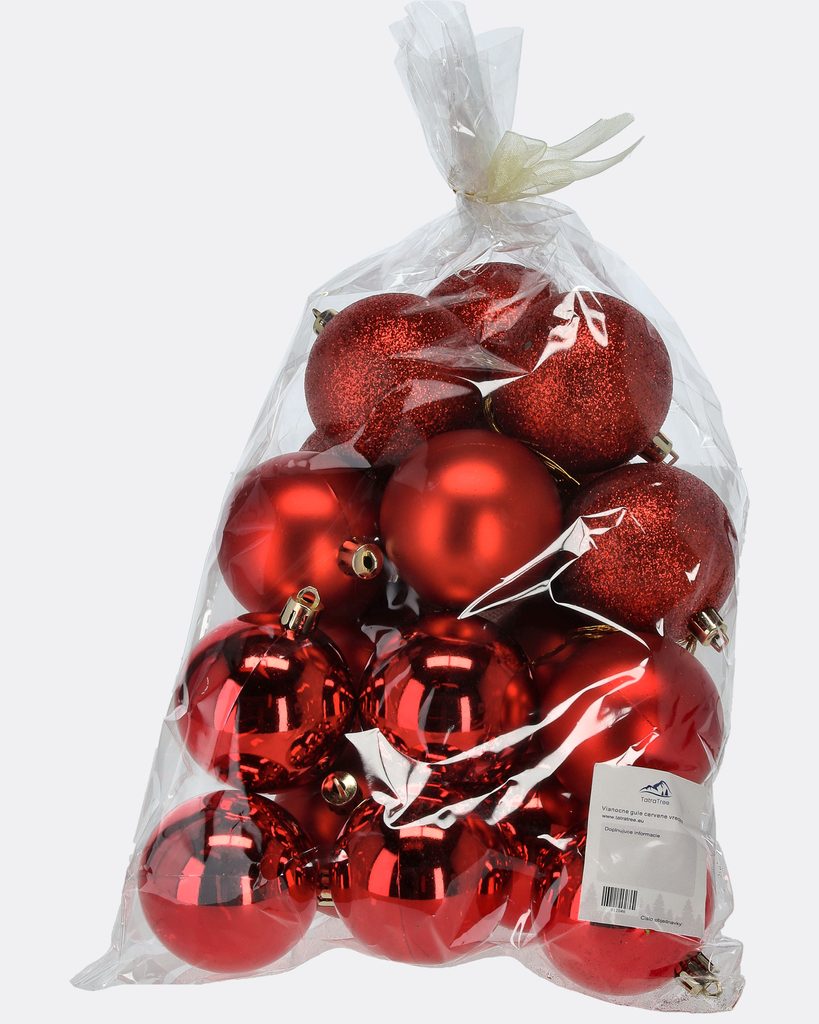 Červené vianočné gule vo vrecúšku