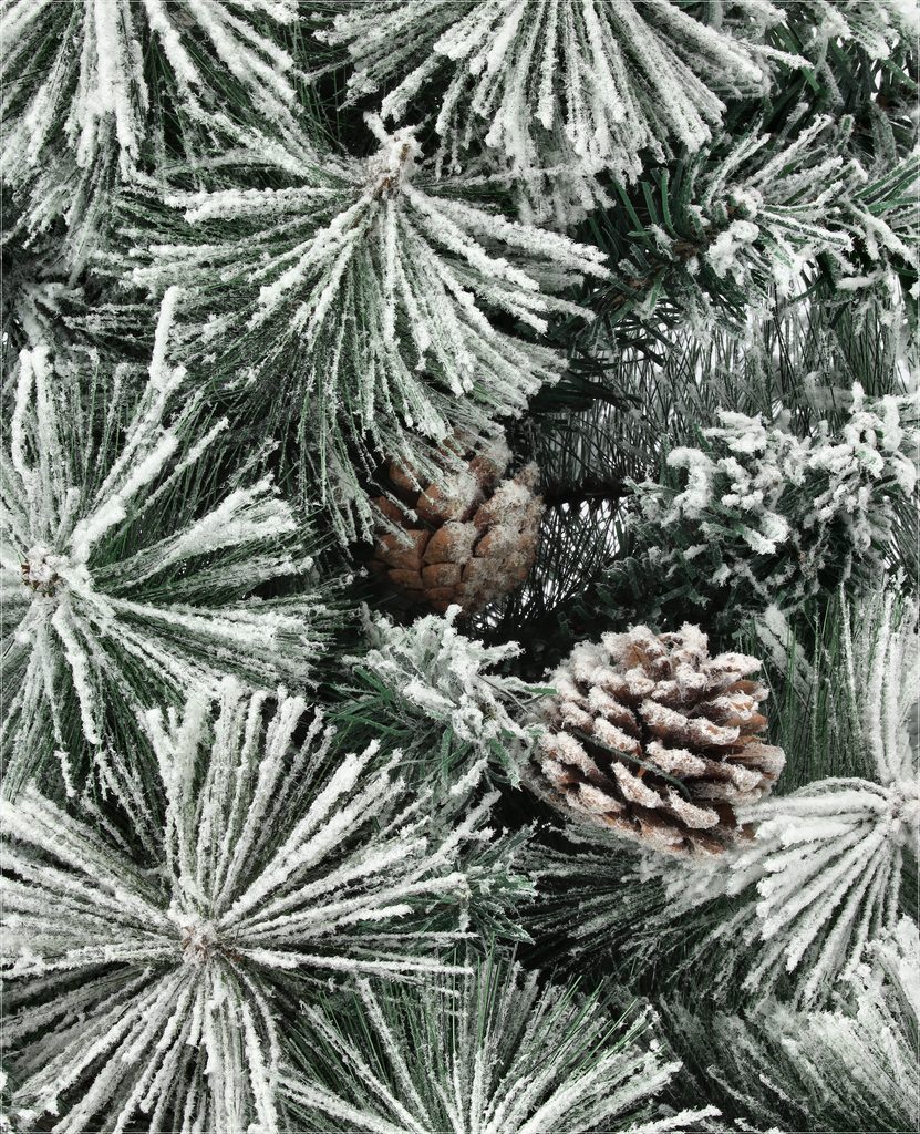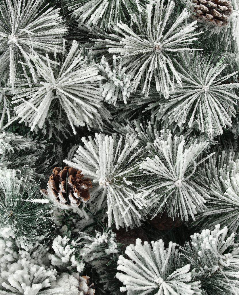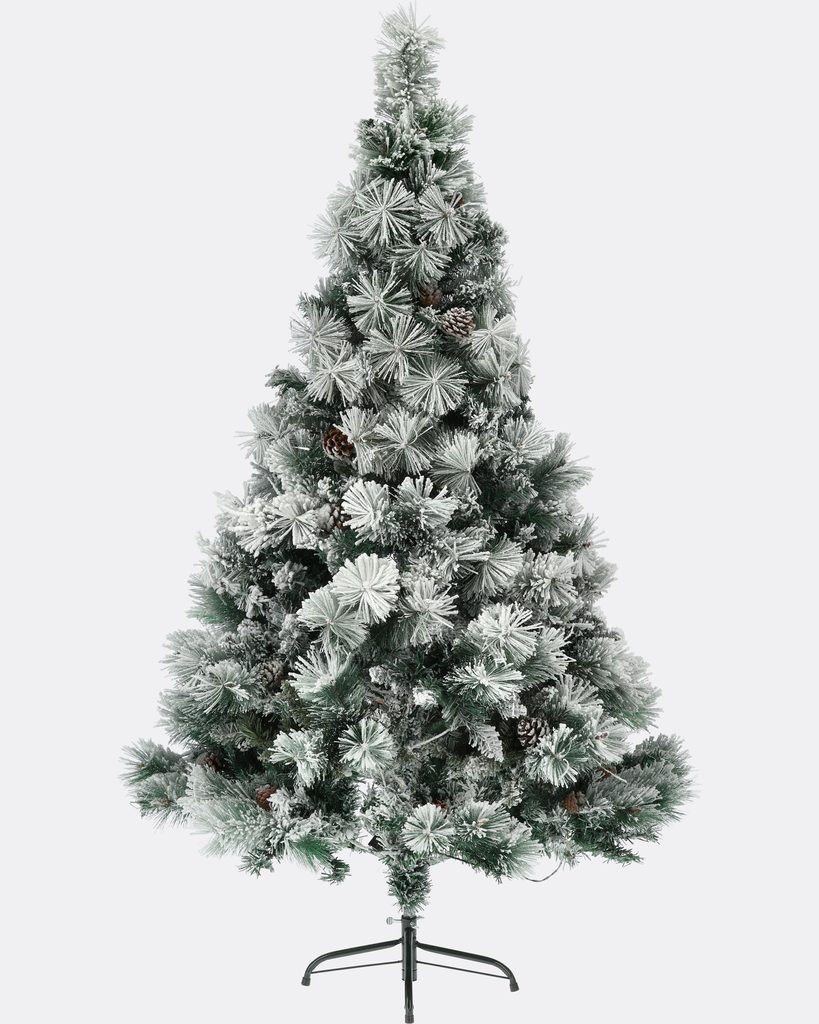 Jeho unikátnosť spočíva v hustých vetvičkách s dlhým ihličím a bohatým, bielym zasnežením, ktoré verne imituje čerstvo napadaný sneh. Zasneženie na vetvičkách vytvára ilúziu zasneženej borovice priamo z lesa a prináša do interiéru tú pravú vianočnú atmosféru. Stromček je navyše ozdobený prírodnými šiškami, ktoré podčiarkujú jeho autenticitu a dodávajú mu ešte pôsobivejší vzhľad.
