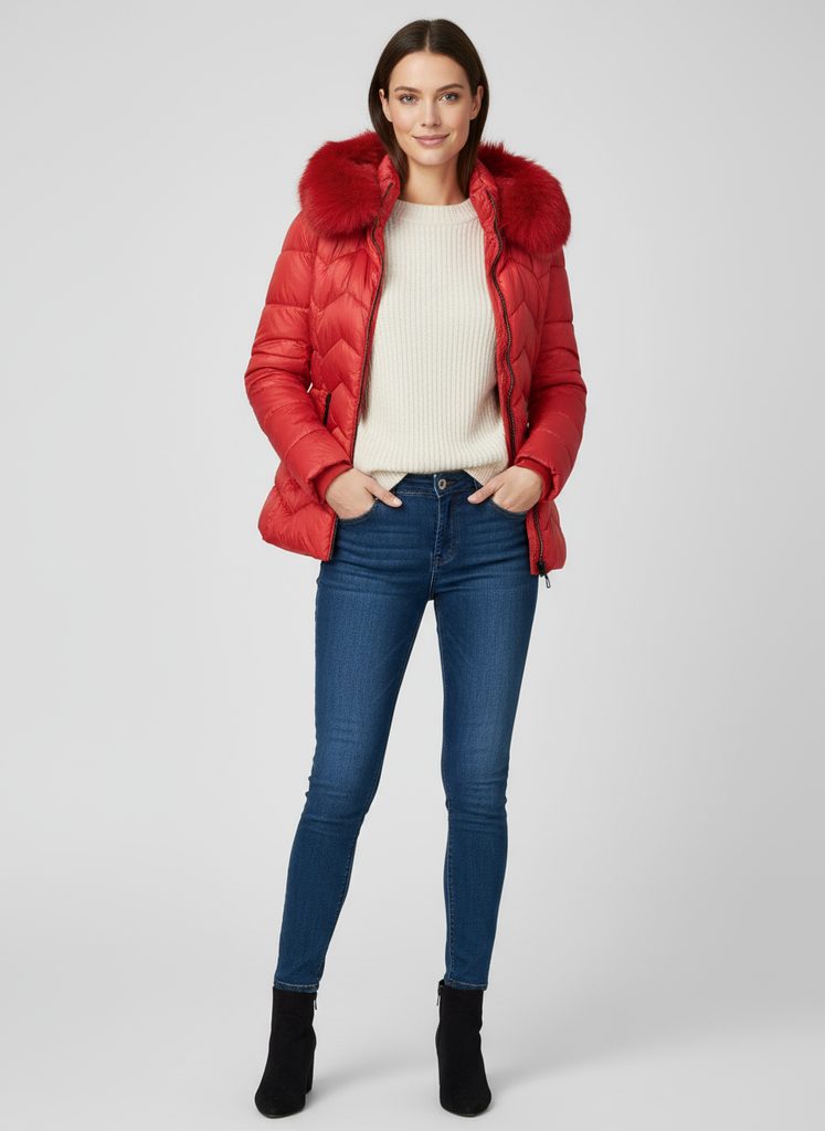 - dámska prešívaná zimná bunda s kožušinou