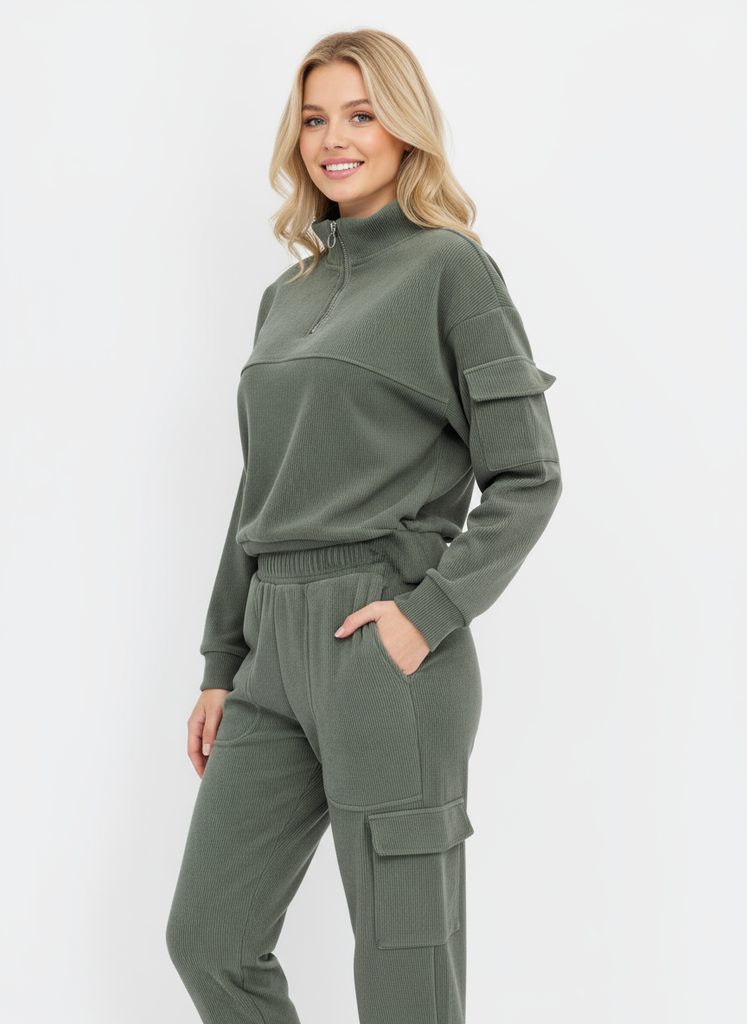 - mikina: bez kapucne, zapínanie na zips, vrecko na ramene